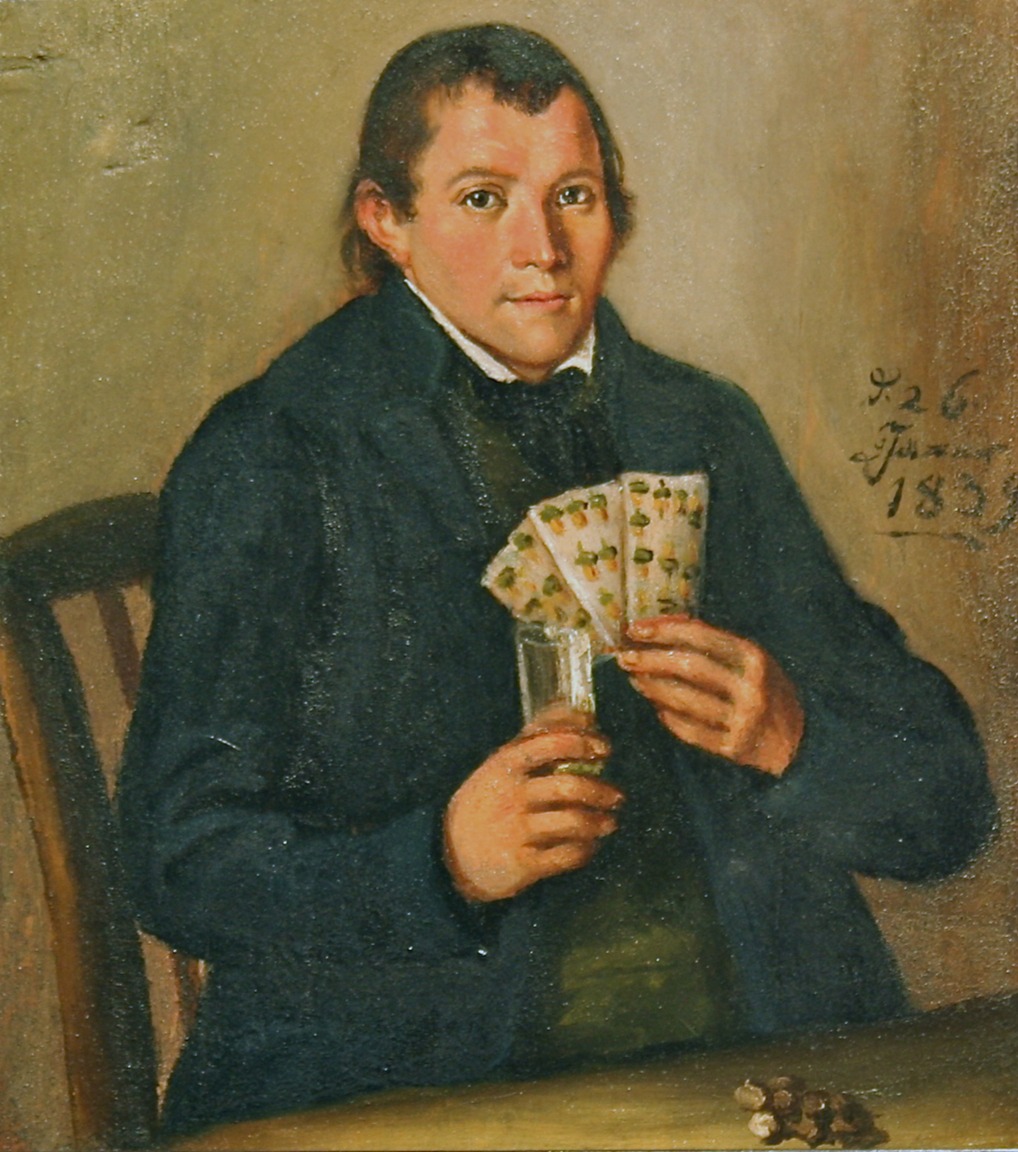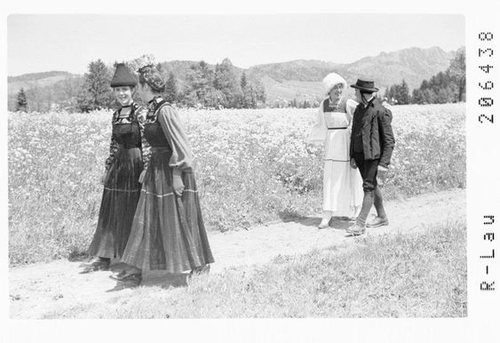 Als die Fotografie im 19. Jahrhundert allmählich Einzug in den Alltag hielt, war die Bregenzerwälder Männertracht vielerorts bereits aus dem täglichen Leben verschwunden. Besonders im Vorderwald wurde sie schon früh nur noch zu besonderen Anlässen getragen oder gar ganz abgelegt – lange bevor fotografische Aufnahmen zur gängigen Praxis wurden. So gibt es nur wenige authentische Fotos, die Männer in vollständiger Wäldertracht zeigen. Gerade deshalb kommen historischen Gemälden und Zeichnungen ein besonderer Wert zu: Sie geben uns einen seltenen visuellen Einblick in das Erscheinungsbild der damaligen Zeit. Einige dieser Werke sind bis heute erhalten und dienen als wertvolle Quelle für die Rekonstruktion und das Verständnis der Männertracht. (Bildnachweis: egg museum)
