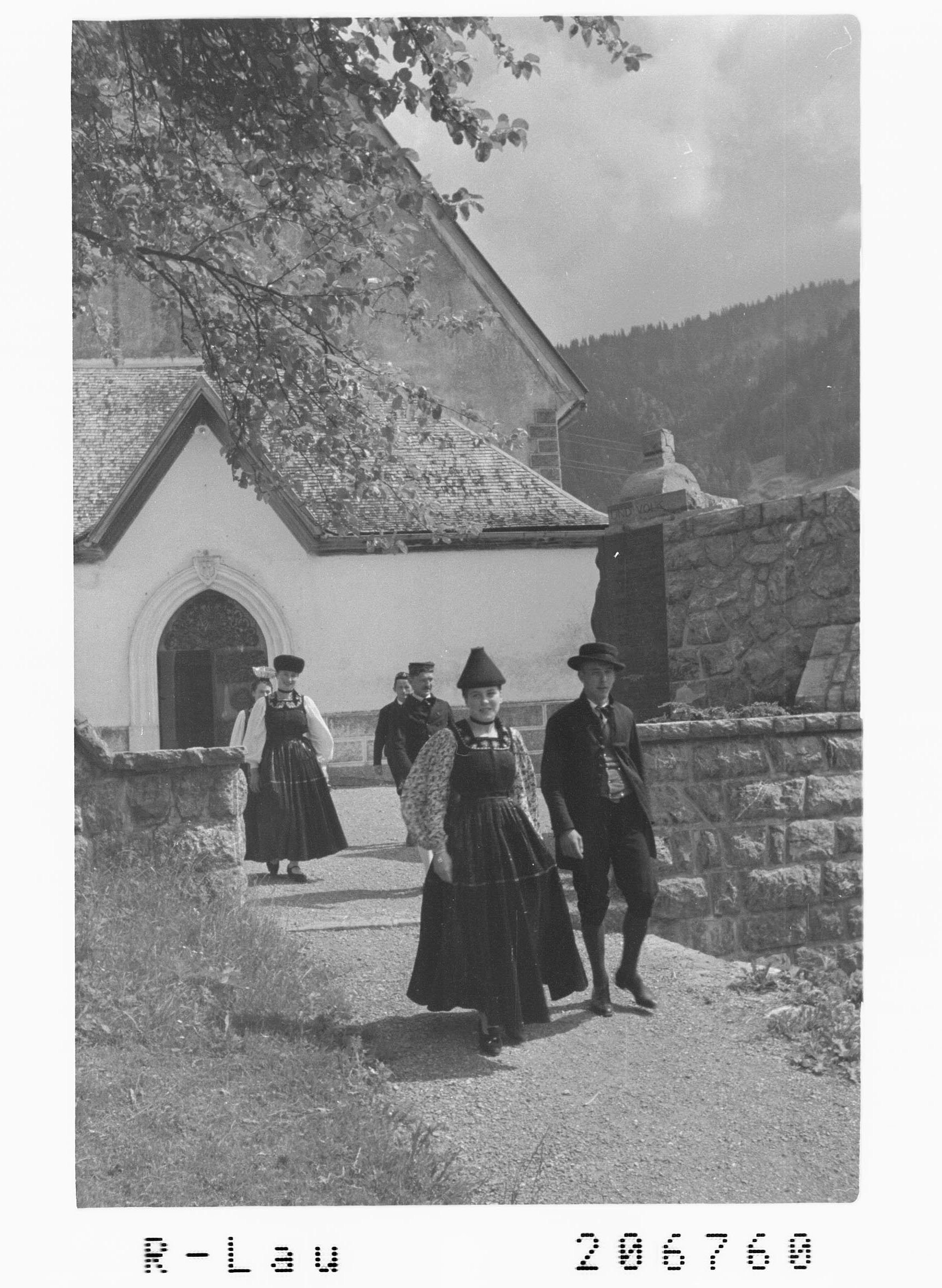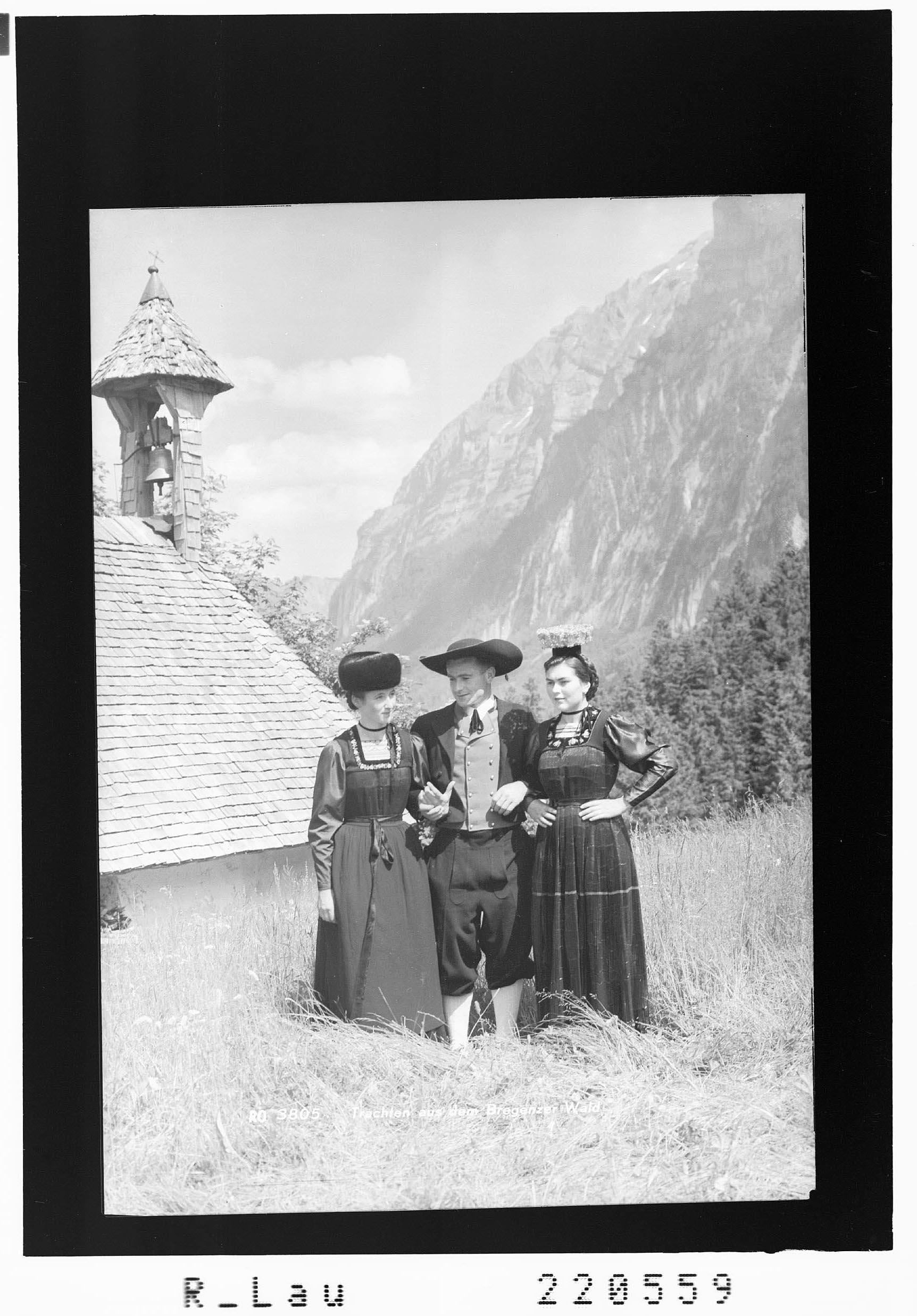Leider ist sie längst nicht mehr lebendig, und ihre letzten Reste, die schon vor vielen Jahren verschwanden, konnte man kaum mehr mit vollem Recht eine Tracht nennen. Nicht nur in Vorarlberg läßt sich die Erscheinung beobachten, daß die Frauentrachten langlebiger sind als die der Männer. Der Gründe dafür gibt es gar viele. Gewöhnlich kommt der Mann eher als die Frau in fremde Länder oder Landschaften, wo seine auffallenden Kleider ihm nachgerade lästig werden. Und besonders im Wald, wo früher jeden Frühling scharenweise Männer besonders als Maurer und Gipser in die Fremde zogen, dürfte dieser Grund schwer in die Waagschale fallen. Auch das Militär bleibt nicht ohne Einfuß. Schon beim Einrücken wird ein Trachtenmann von der Seite angeschaut, als einer, der zehn Stunden hinter dem Walde zu Hause ist. Es folgen die Dienstjahre, in denen er sich an andere Kleider gewöhnt, und fährt er endlich heim, kann er sich nicht mehr entschließen, die alte Mode mitzumachen. Außerdem sind seit mehr als 100 Jahren die Modekleider in der Männerwelt so auf reine Nützlichkeit und Bescheidenheit in Farbe und Schnitt eingestellt, daß eine bunte altertümliche und ich kostspielige Männertracht ihr gegenüber zum vornherein im Nachteil ist. Deshalb sind viele Männertrachten längst verschwunden selbst in Tälern, wo sich die weibliche Tracht gut und durchgehend erhalten hat. Und trotzdem ist man überrascht, wenn man sieht, wie früh sich die Wälder der herrschenden Mode zugewandt, zu einer Zeit, Inder der Wald noch recht abgelegen und verhältnismäßig schwer zugänglich war.